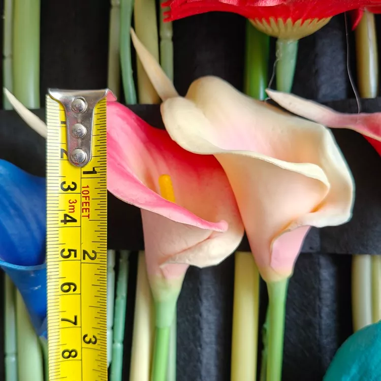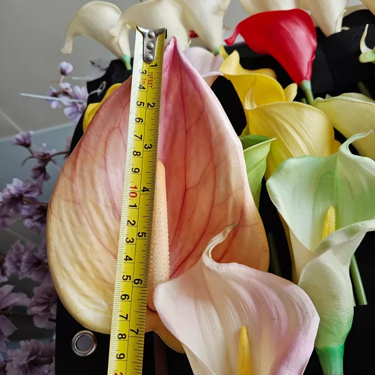 सिमुलेशन सामग्री: हाम्रो OULI® PO कृत्रिम क्याला लिली श्रृंखलाहरू सफ्ट पैंचामा बनेका छन्, र डाँठ प्लास्टिक र तारबाट बनेको छ, जुन आकारको र फिक्सिंगका लागि उपयुक्त छ।